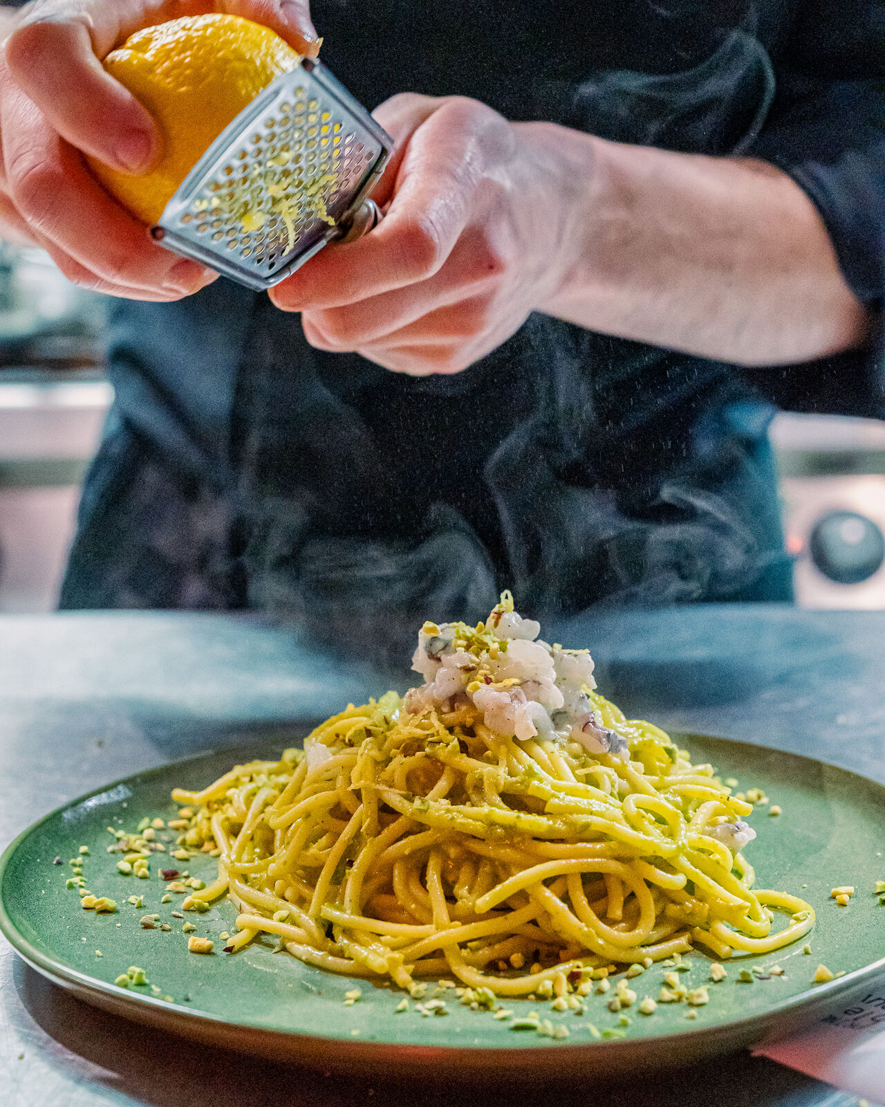 Il entraîne ainsi son équipe vers l’excellence en retravaillant les plats traditionnels italiens. Le résultat ? Une cuisine simple, colorée et festive que le chef conçoit comme de véritables tableaux de maître.